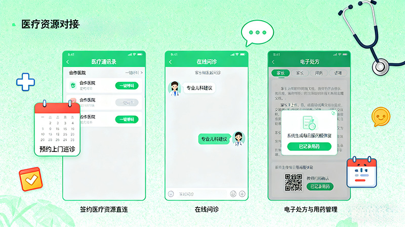 家长、机构、医疗方通过系统实现健康信息实时同步,避免信息不对称导致的照护偏差