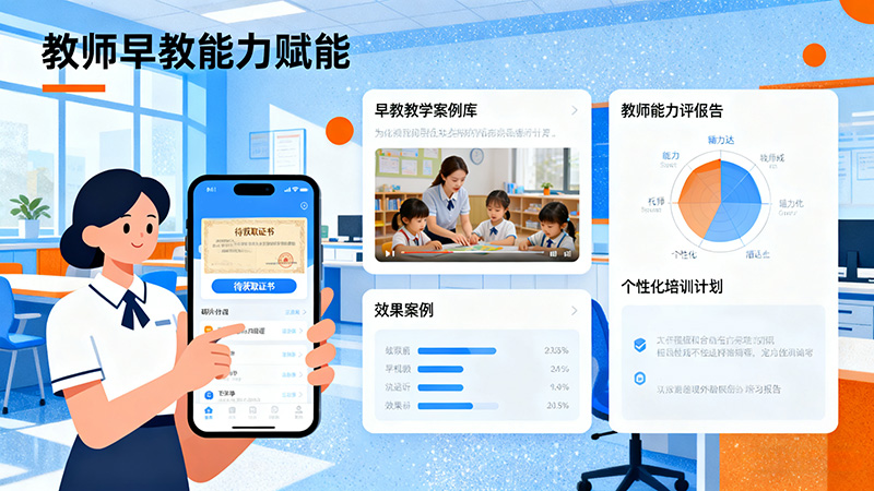 线上早教培训课程:提供早教培训课程,支持教师利用碎片时间学习,完成课程后可获得培训证书。